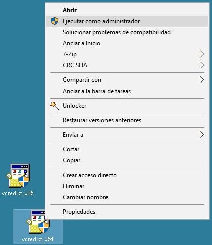 - En Windows 64 bits ejecutamos los archivos como administrador para instalar la actualización, abriendo primero vcredist_x64.exe y luego vcredist_x86.exe.